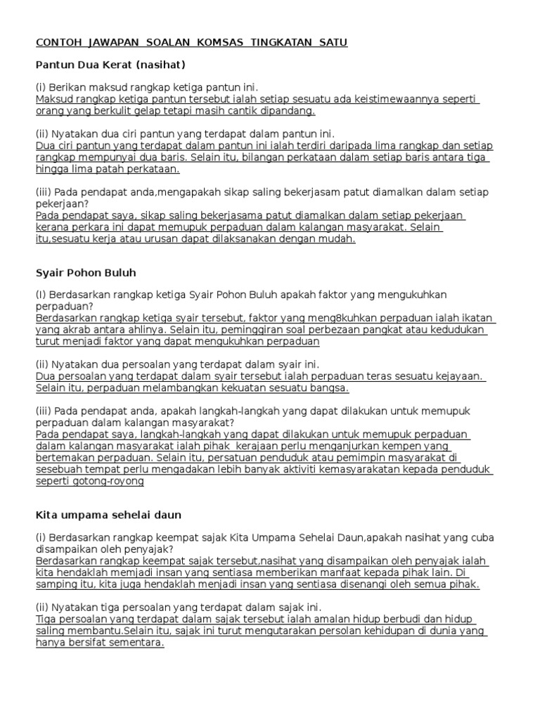 Contoh Jawapan Soalan Komsas Pdf